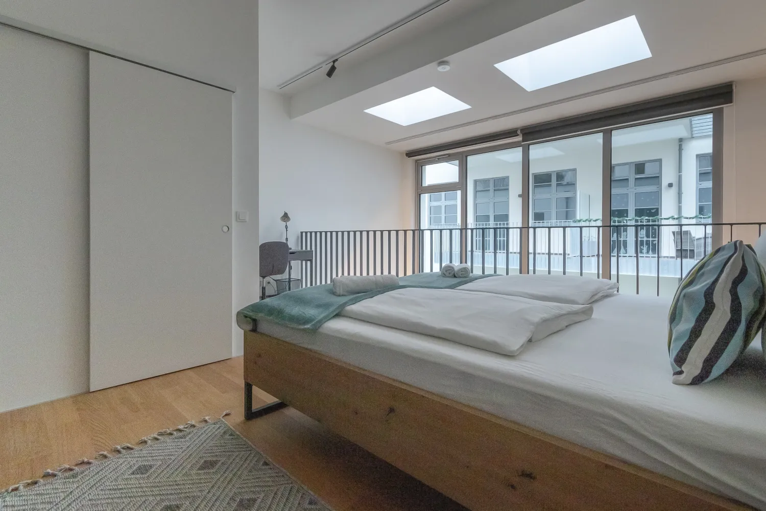 Stay in a listed 1931 Bauhaus building with true atelier character, a private garden and terrace — right in Vienna. This unique duplex apartment in Floridsdorf combines architectural heritage with modern comfort for up to 4 guests (base price for 2, up to 2 additional).
