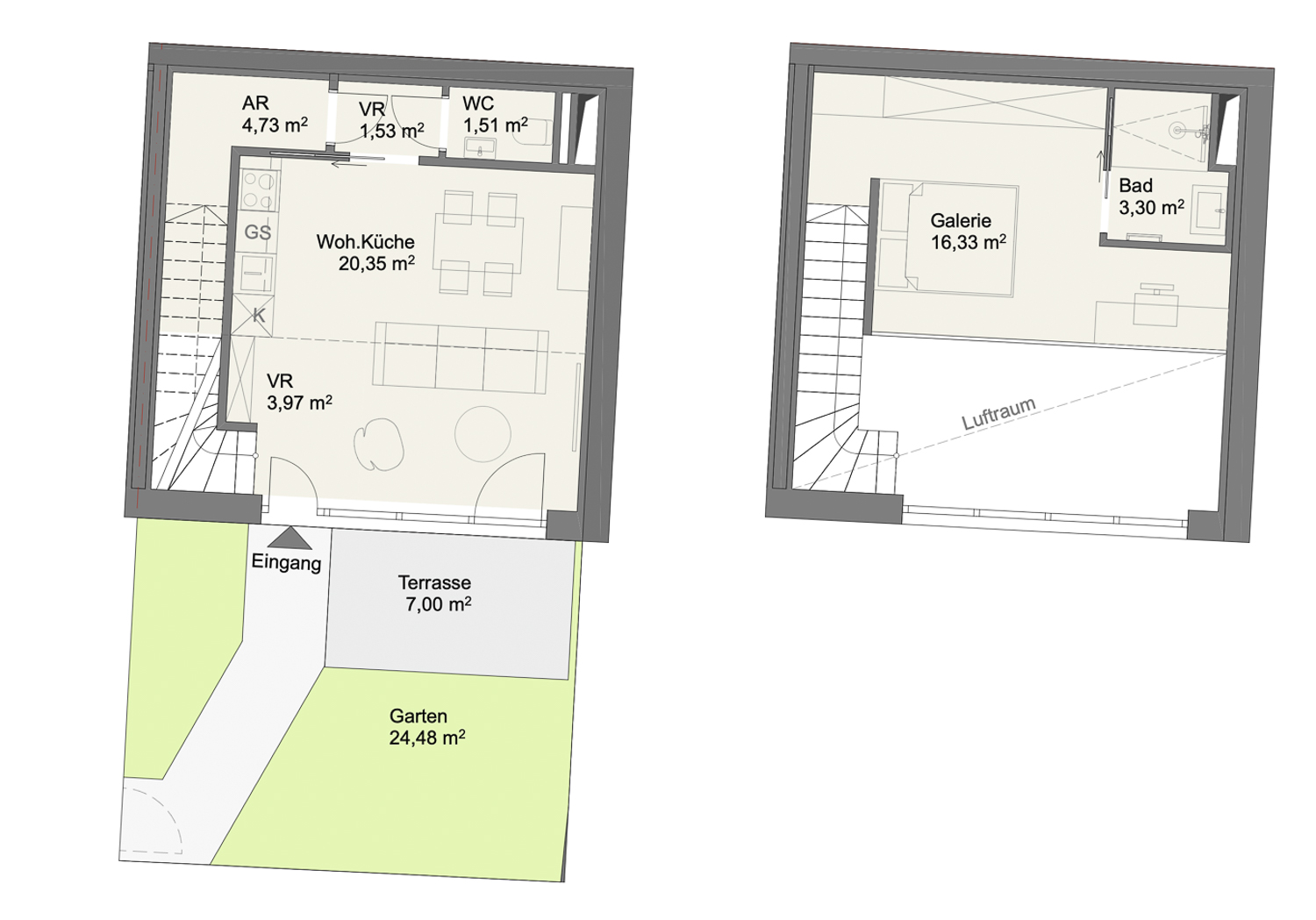 - Privater Garten mit Terrasse