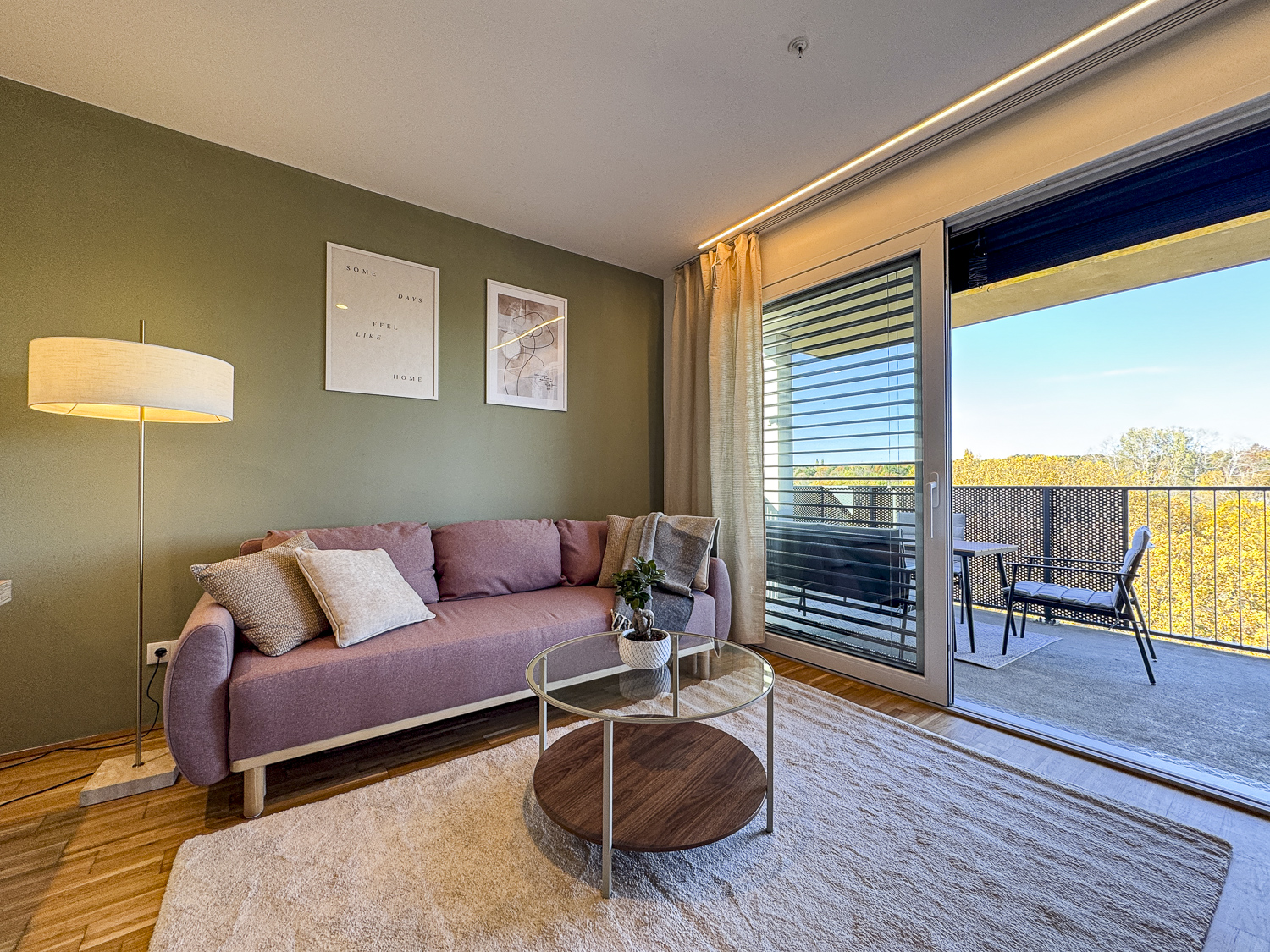 Welcome to your feel-good oasis with a wow factor! Enjoy the spectacular panoramic park view from the spacious balcony of this stylish 9th-floor apartment. The perfect combination of tranquility and urban living: right next to Kurpark Oberlaa, you can reach Therme Wien in 2 minutes on foot and Vienna’s city center in 15 minutes via the U1.